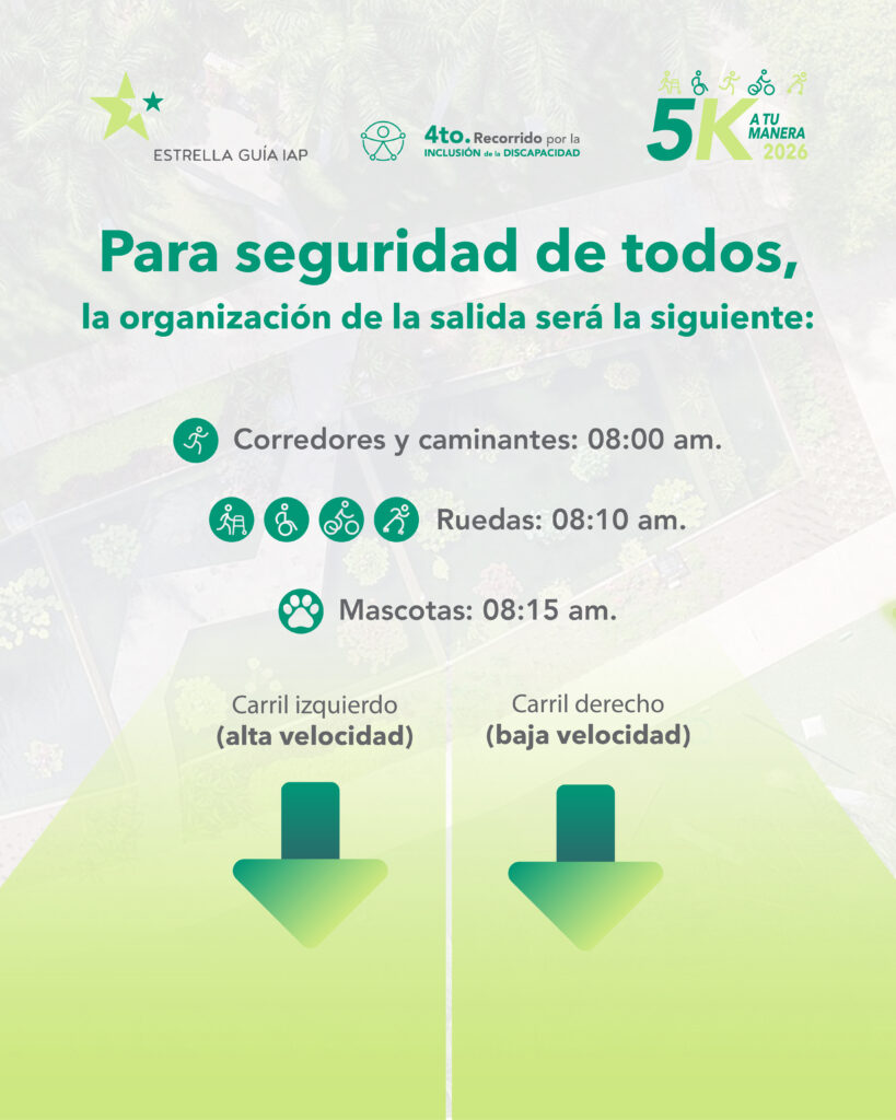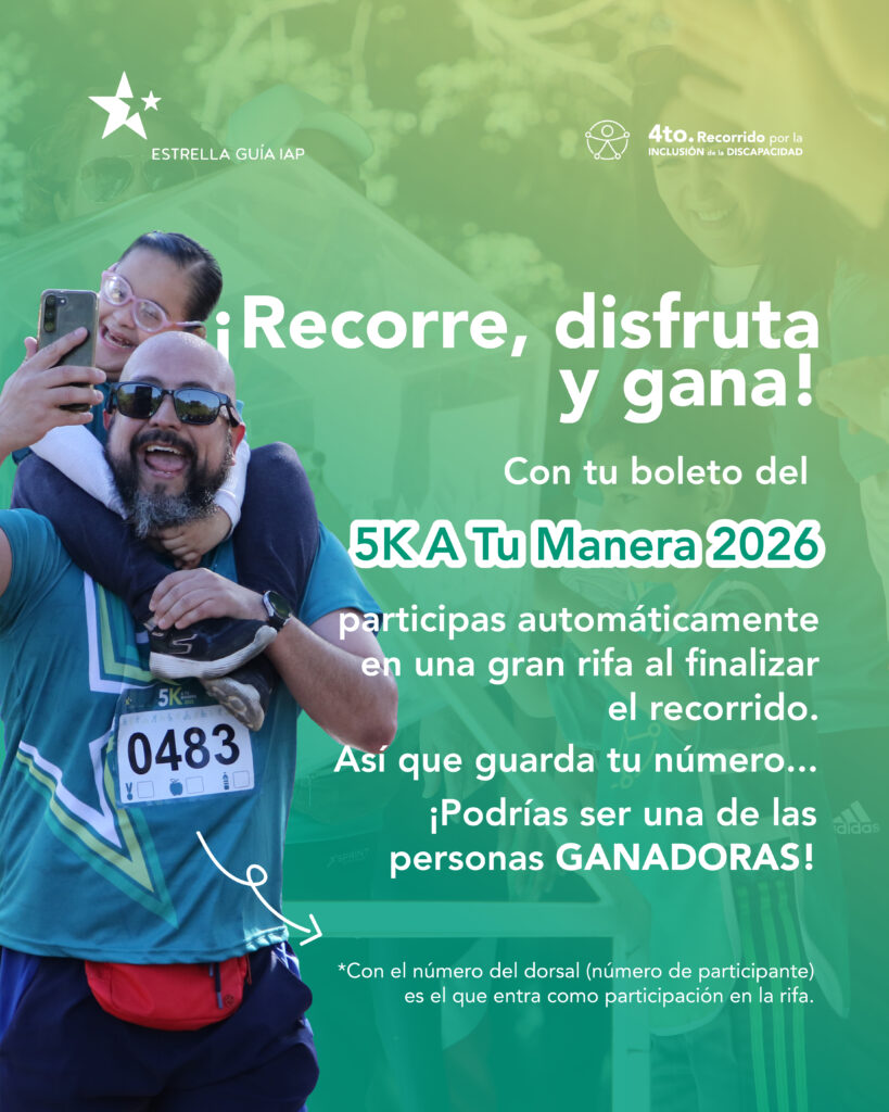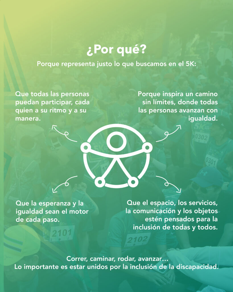 Es un evento familiar donde participan personas caminando, corriendo, en silla de ruedas, andadera, patines, bicicleta…Cada persona decide cómo convivir y promover la inclusión de la discapacidad.